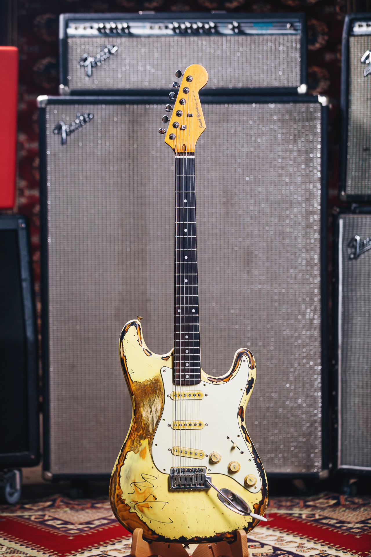We are able to source the highest quality woods and components to create bespoke guitars that look, feel, and sound completely unique. Our Artisan Master builders painstakingly produce a period correct aged and roadworn relicing process to give your guitar that worn, vintage look to match its versatile tone.